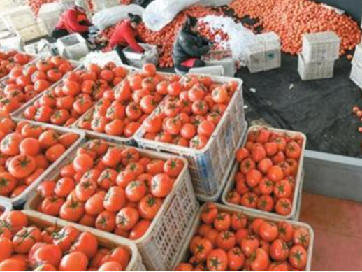 近年来,河北省肃宁县持续推进农业产业结构调整,因地制宜发展特色设施农业,种植高品质蔬菜,促进农民增收,助力乡村全面振兴。图为肃宁县万里镇一家蔬菜种植合作社的社员在分拣收获的西红柿。