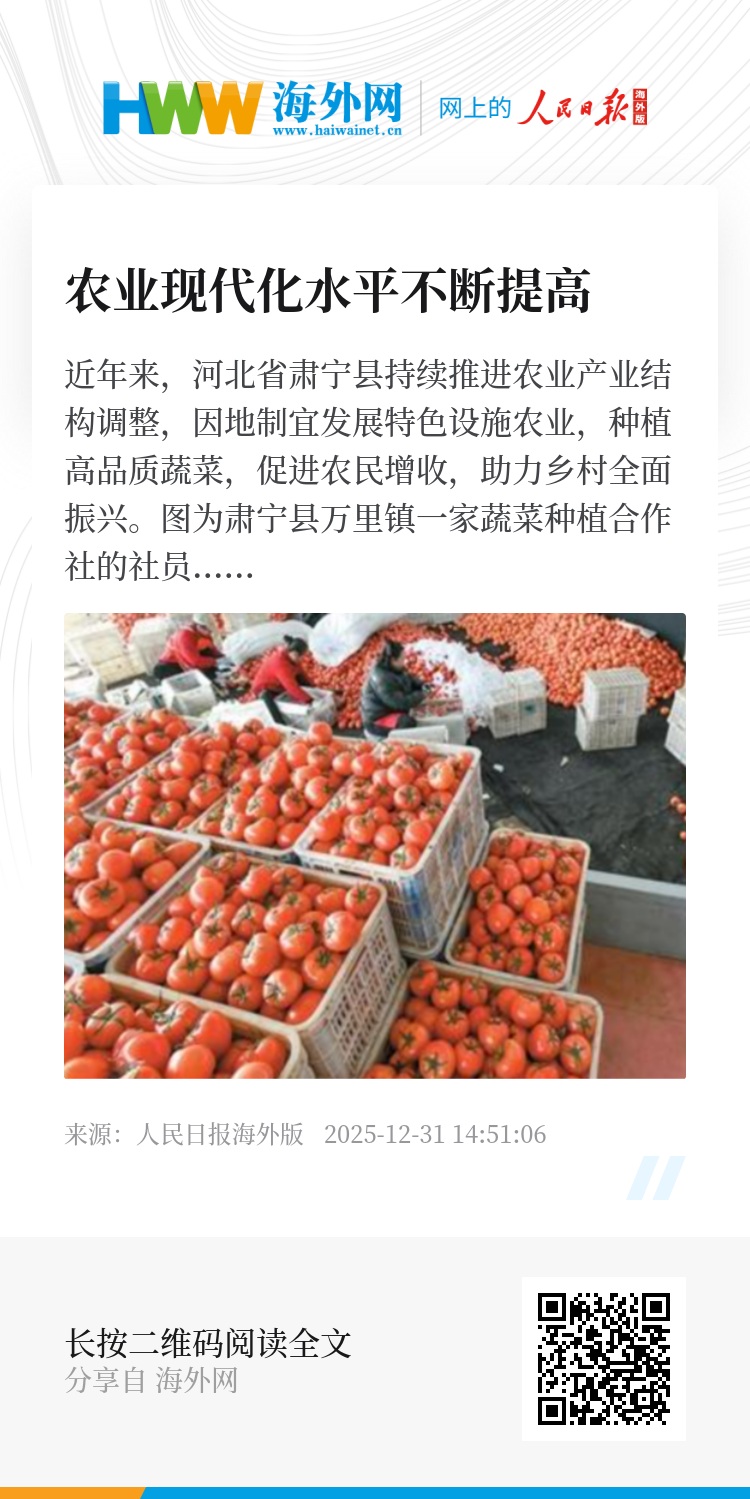 12月29日至30日,中央农村工作会议在北京召开,分析当前“三农”工作面临的形势和挑战,部署2026年“三农”工作。会议强调,农业农村现代化关系中国式现代化全局和成色,必须加快建设农业强国。