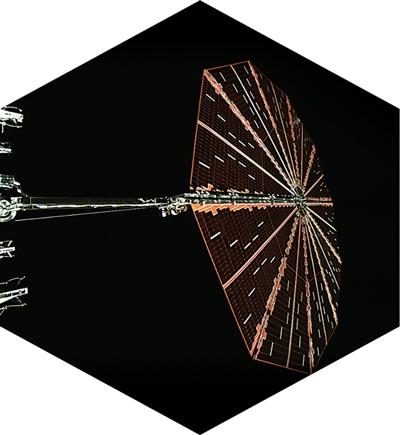 国家航天局发布的天问二号探测器传回的圆形太阳翼展开的图片。