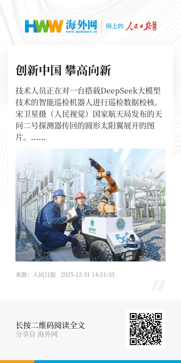 回望2025年,“人造太阳”的束流瞬间点亮,承载起人类探索“终极能源”的梦想;光电融合通信芯片问世,为6G奠定了硬件基础;航天员安全往返天地间、国家太空实验室运行良好,飞天逐梦步履不停;大桥飞架、高铁奔驰,远程手术隔空“操刀”、“云端教室”赋能山村课堂,民生保障更加有力;人工智能、生物医药、机器人等一批标志性科技产品惊艳世界,24个全球创新集群入围全球百强,中国的创新实力、综合竞争力得到越来越多的认可……