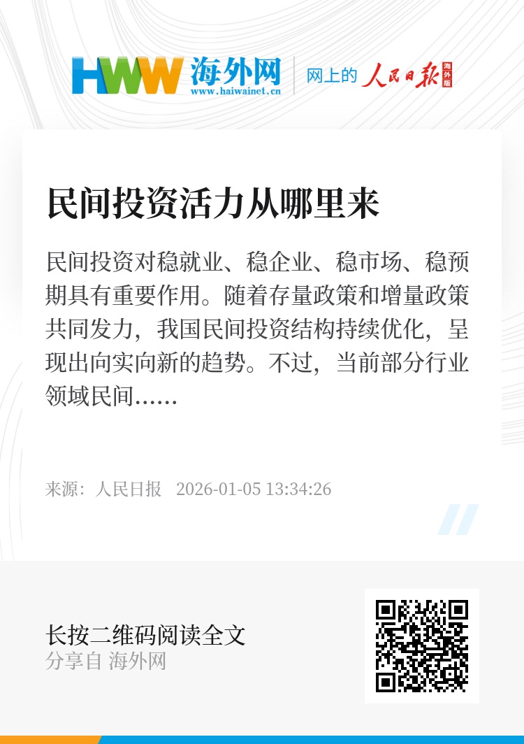 深化投资体制机制改革,是打破行业准入壁垒、释放民间投资潜力的核心路径。“十五五”规划建议明确提出“完善民营企业参与重大项目建设长效机制”。目前,《市场准入负面清单(2025年版)》已“瘦身”至106项,较2018年版减少45项,保障民企公平竞争权利,让民企可专心创业、放心投资、安心经营;不久前,国务院办公厅印发《关于进一步促进民间投资发展的若干措施》的通知,明确鼓励民间资本参与铁路、核电等重点领域建设,引导其有序流向工业设计、共性技术服务等高价值服务行业关键环节;未来,围绕“投资于物与投资于人紧密结合”的导向,民间资本还有望加快拓展公共服务领域投资场景……“玻璃门”“旋转门”正被一一拆除,随着改革持续深化,民间资本必将舒活筋骨,大显身手。
