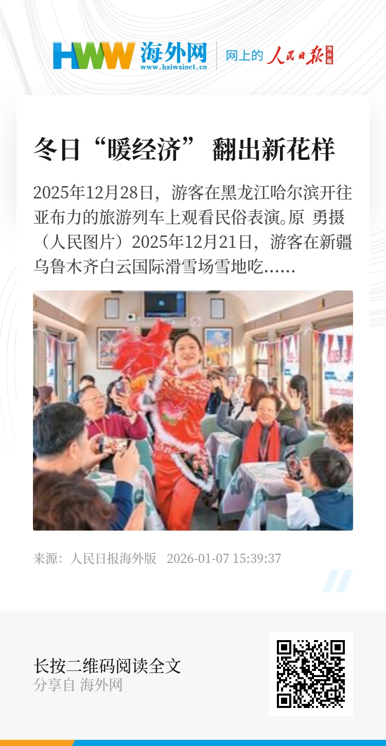在气温持续走低的冬日里,“暖经济”成为一股消费热潮。去东北玩想穿得暖和,可以选择在当地租赁羽绒服;想吃热乎乎的火锅,可以逛逛“涮肉美食节”;朋友聚会要温暖也要欢乐,泡温泉、做汗蒸成了不少年轻人的心头好……冬季消费形式推陈出新,激发出别样活力。