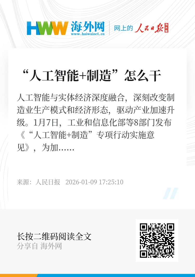 人工智能与实体经济深度融合,深刻改变制造业生产模式和经济形态,驱动产业加速升级。1月7日,工业和信息化部等8部门发布《“人工智能+制造”专项行动实施意见》,为加快推进人工智能技术在制造业融合应用明确目标举措。
