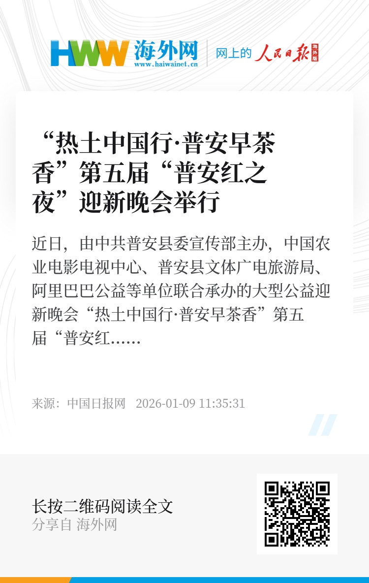 “热土中国行·普安早茶香”第五届“普安红之夜”迎新晚会,不仅是一场茶香四溢的跨年文化盛宴,更是一次成功的区域公共品牌宣介与农文旅融合发展成果的集中展示,活动以茶为媒,将千年茶文化转化为发展动能,用现代传媒手段链接起大山与外界,让茶产业成为乡村振兴的“金钥匙”,让民族文化成为发展的“软实力”。为“热土中国行”系列活动谱写了崭新的普安篇章。(中国农业电影电视中心《乡约》栏目)
