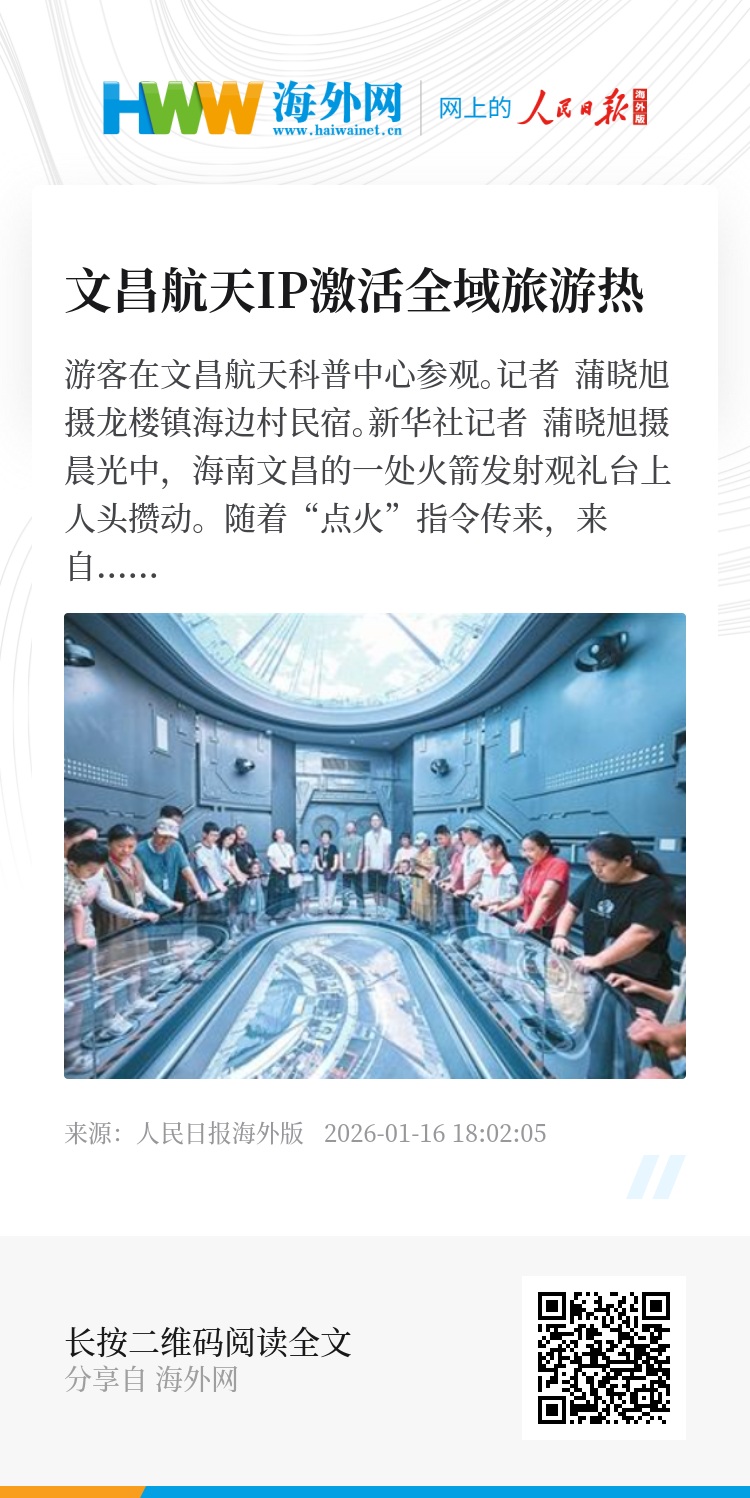航天IP正推动文昌从火箭“发射地”到全域旅游“热门地”。文昌市市长曹树育表示,未来文昌将进一步推动航天文旅深度融合,致力成为具有全球吸引力的“航天旅游之都”。