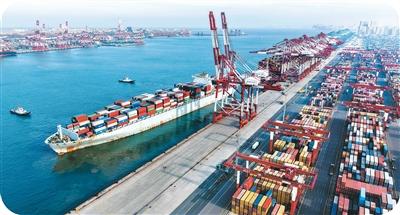 近年来,RCEP航线成为许多港口的重点拓展方向。图为日前,山东港口青岛港一艘装载外贸集装箱的货轮在离开泊位。