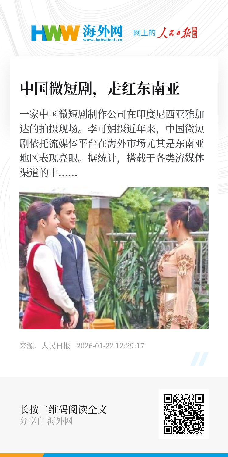 “中国微短剧中的情节设定,契合了东南亚民众对公平、希望与美好生活的向往,很容易引发情感共鸣。”印尼三一一大学社会学家德拉贾特·卡托诺分析,观众在观看剧情的同时,也在接受剧中传递的积极价值理念,“这类贴近现实、契合大众心理期待的内容,往往能突破文化差异,获得广泛认同”。