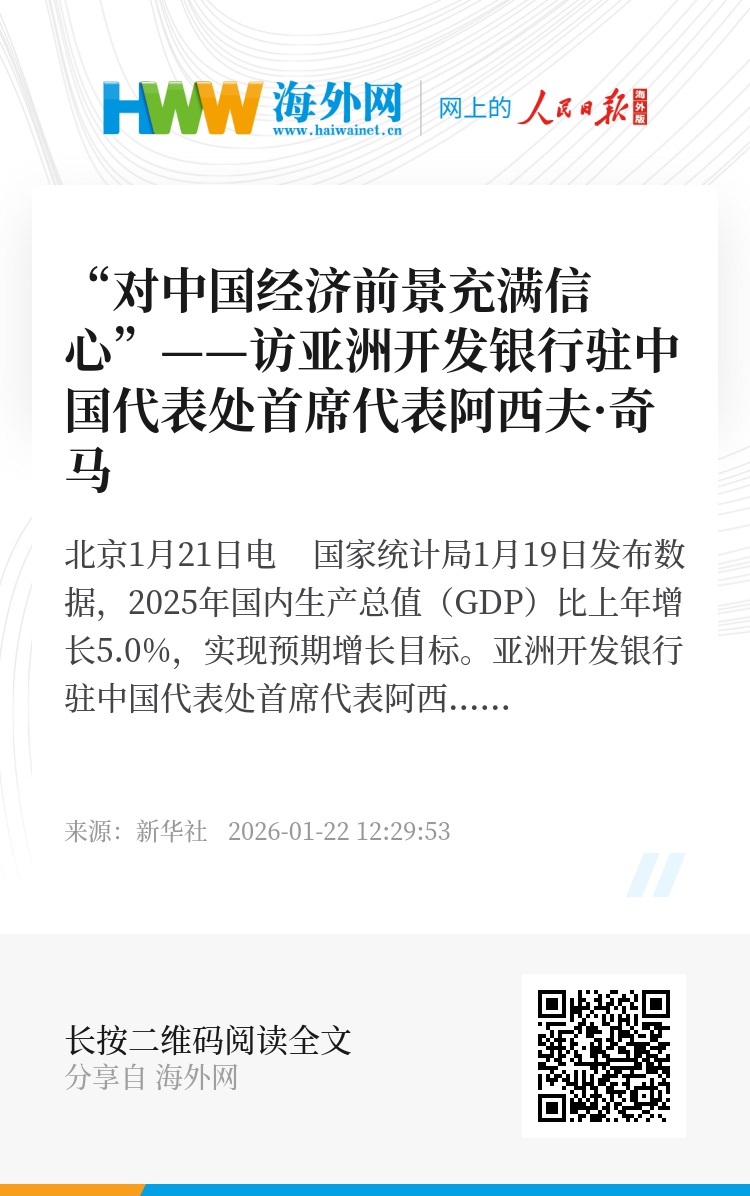 “中国经济表现非常突出,在出口市场多元化拓展、发展高科技产业等方面做得非常出色。”奇马说。基于此,亚洲开发银行已于2025年12月将中国经济增速预期进行上调。