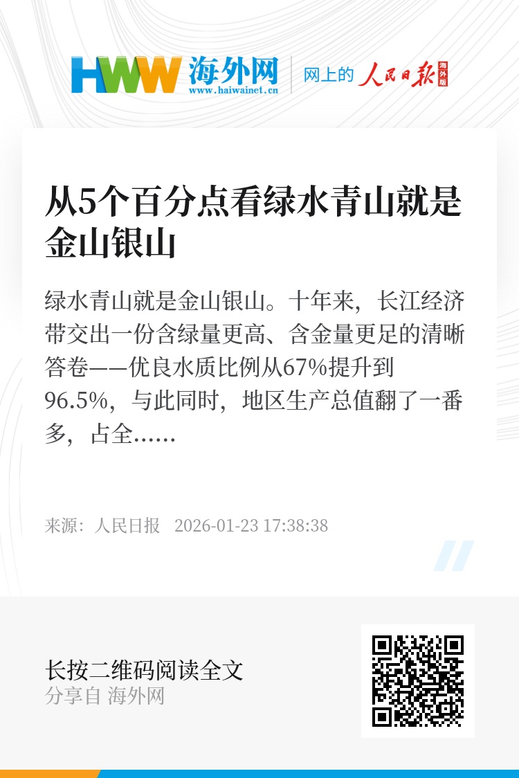 绿水青山就是金山银山。十年来,长江经济带交出一份含绿量更高、含金量更足的清晰答卷——