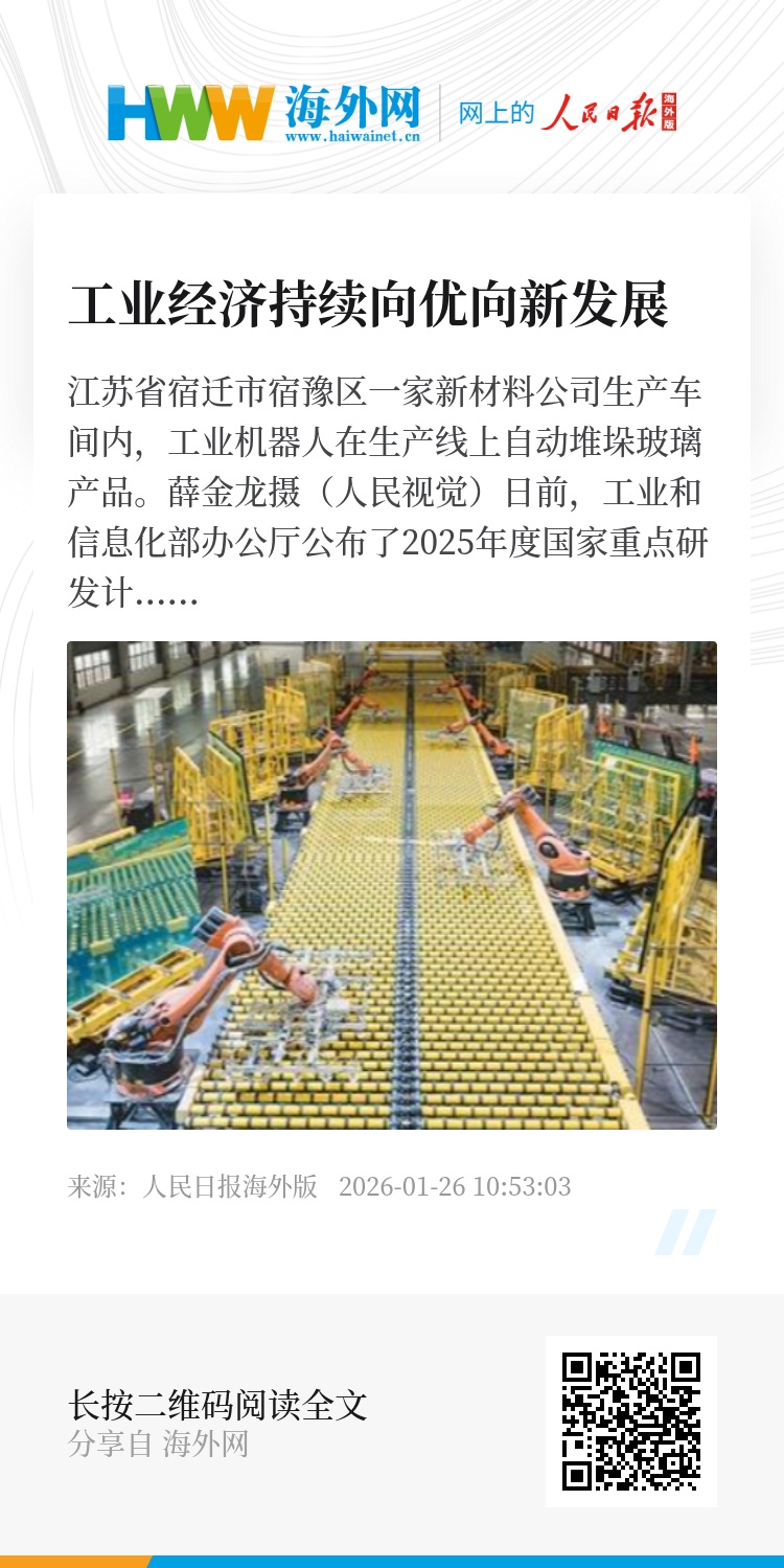国家统计局表示,2025年,面对国内外形势复杂变化,全国工业生产平稳向好,工业企业出口韧性彰显,企业利润结构改善,装备制造业、高技术制造业较快增长,传统制造业优化升级,新质生产力加快形成,工业经济持续向优向新发展。