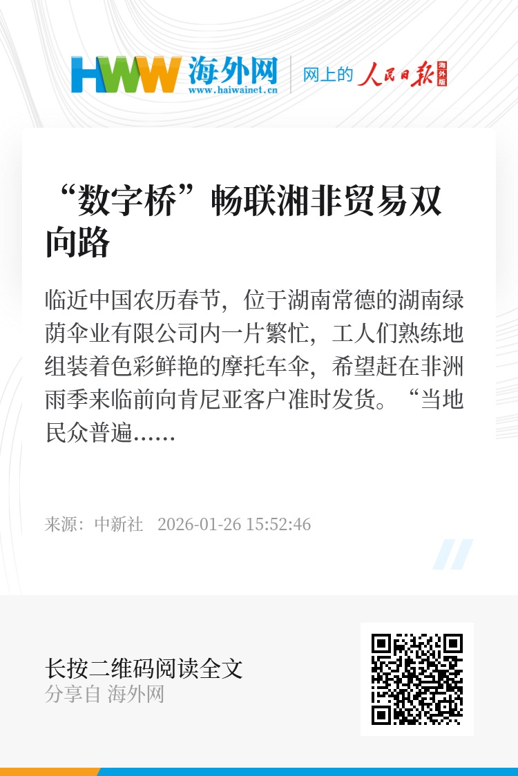 摩托车伞顺利漂洋过海的背后,是一座日益畅通的“数字桥”。长沙海关数据显示,2025年湖南对非洲国家进出口580亿元人民币,同比增长5.8%,连续7年居中西部第一。