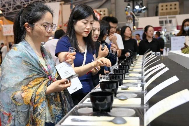 2025年5月16日,观众在2025昆山国际咖啡产业展览会上品尝咖啡。
