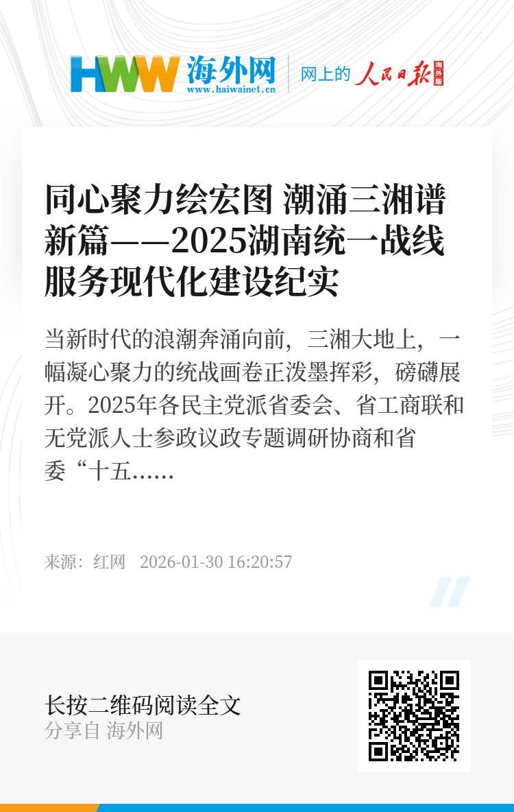 同心同向、同频共振。湖南统一战线以广泛凝聚共识、广泛凝聚人心、广泛凝聚力量的实际行动,让同心筑梦的磅礴伟力在三湘大地持续激荡。