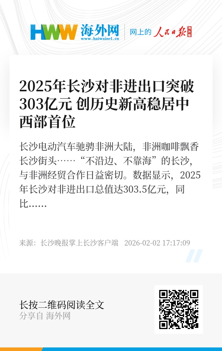 长沙电动汽车驰骋非洲大陆,非洲咖啡飘香长沙街头……“不沿边、不靠海”的长沙,与非洲经贸合作日益密切。数据显示,2025年长沙对非进出口总值达303.5亿元,同比增长28.9%,贸易规模创历史新高,稳居中西部城市首位,彰显长沙开放型经济活力与湘非合作潜力。