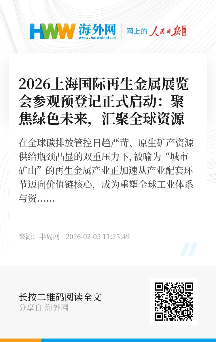 作为集全产业链展示、全球资源对接与深度行业洞察于一体的国际级平台,上海国际再生金属展览会将为与会者系统呈现再生金属领域的现状与未来。目前,展会观众预登记通道已正式上线,于2026年6月30日前完成预登记,即可免费获取价值100元的展会门票。