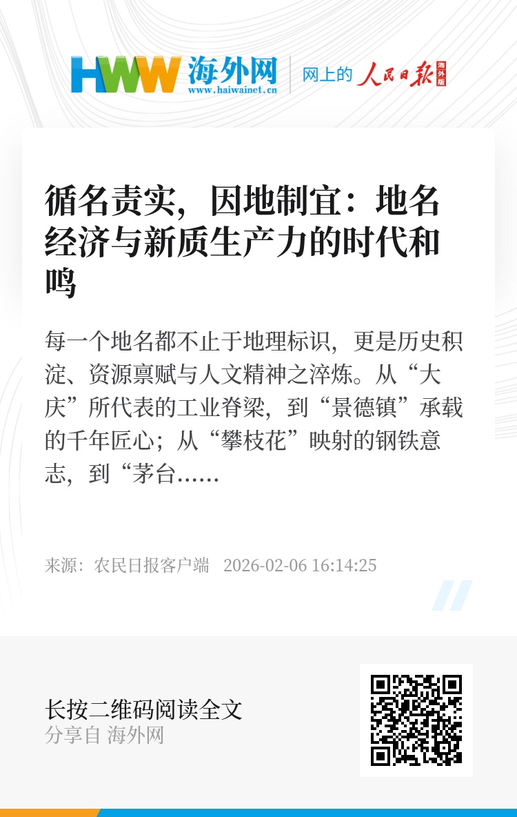 进入高质量发展新阶段,如何解码并激活这些地名背后的深层价值,已成为培育新增长极的关键课题。“因地制宜发展新质生产力”,为我们提供了一把关键钥匙:必须深刻审视并依托各地的特色与优势,走出一条传承与创新并举、禀赋与科技融合的实践之路。