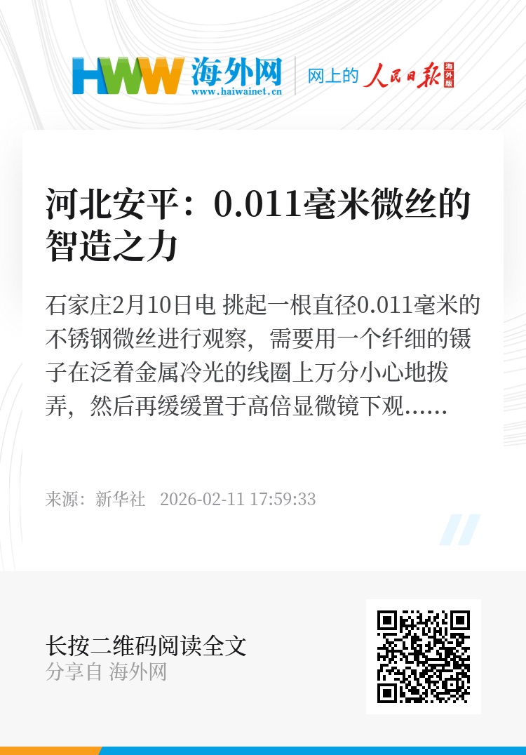 新华社石家庄2月10日电 挑起一根直径0.011毫米的不锈钢微丝进行观察,需要用一个纤细的镊子在泛着金属冷光的线圈上万分小心地拨弄,然后再缓缓置于高倍显微镜下观察。