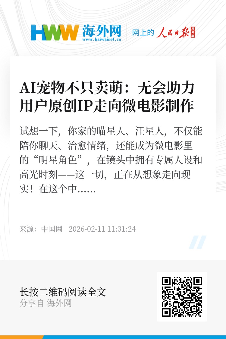 无会 APP相关负责人表示:“我们希望通过微电影这种更具情绪张力和传播力的内容形式,让每一位创作者的 AI宠物都能被看见、被记住。也让宠物IP不仅停留在陪伴层面,更能走上屏幕,成为新的内容明星。未来,平台也将持续拓展AI宠物IP在短片、微电影和互动内容等领域的应用,为创作者提供更自由的创作空间,也为观众带来更新鲜、更有温度的内容体验。”