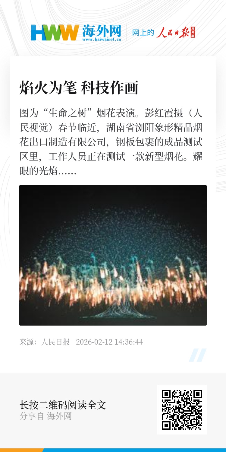 “‘生命之树’的烟花,就来自我们公司。”周正凯自豪地说,公司为浏阳的各类烟花活动已贡献了3万多发烟花产品。“现在已经有海外企业预订我们的无人机烟花秀的专用产品。”(记者 申智林)