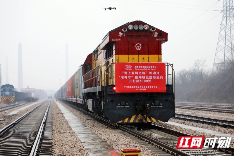 2月11日,一列满载汽车配件的“湘粤非”铁海联运国际班列从湖南长株潭口岸经贸发展有限公司专用铁路鸣笛启程,开往广州南沙港,换船出海,最终抵达印度尼西亚。这标志着“湘粤非”铁海联运国际班列累计开行超2000列。