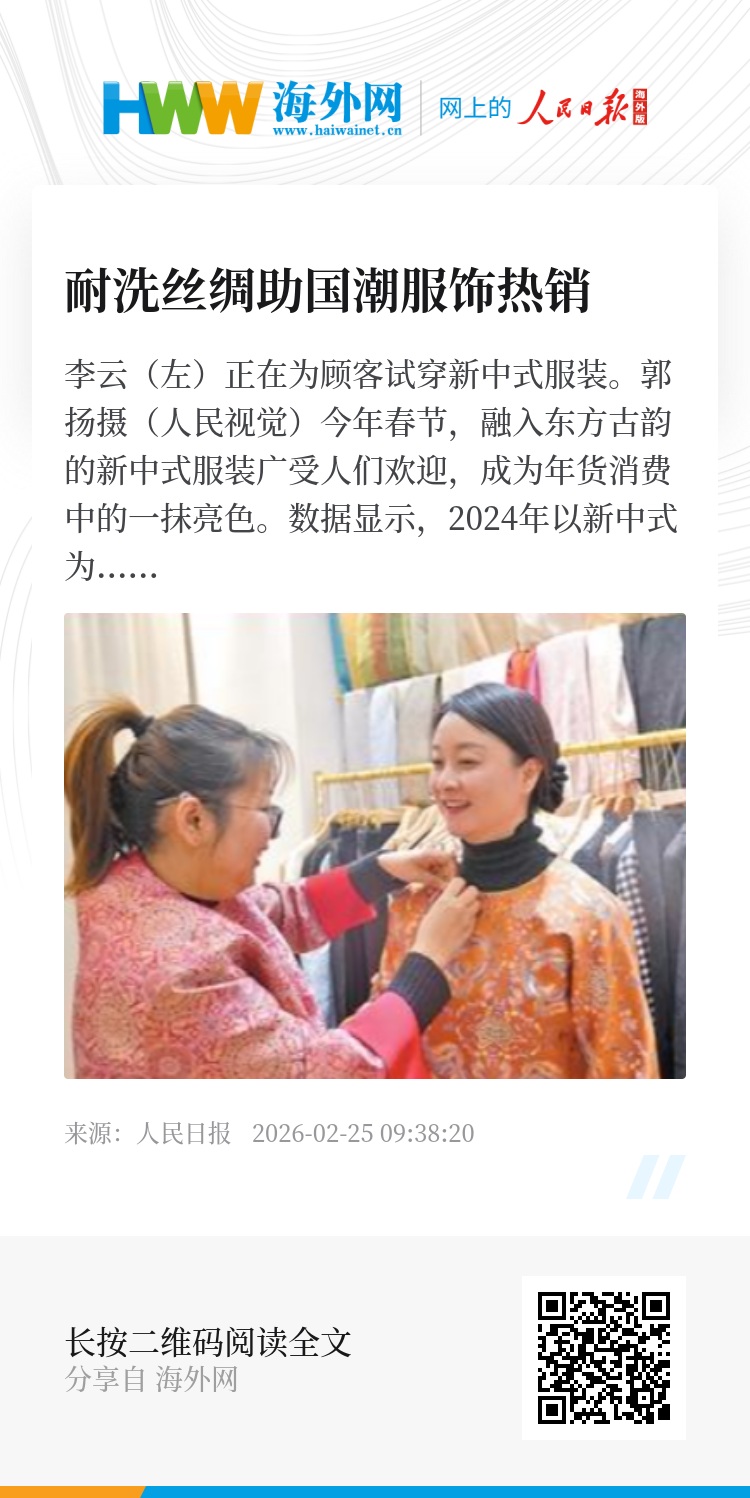 对此,浙江理工大学国际丝绸学院党委书记苏淼认为,丝绸面料曾长期局限于礼服、宴会装等特定高附加值场景,如今新中式服装出圈,确实让消费者对丝绸面料有了更多期待。
