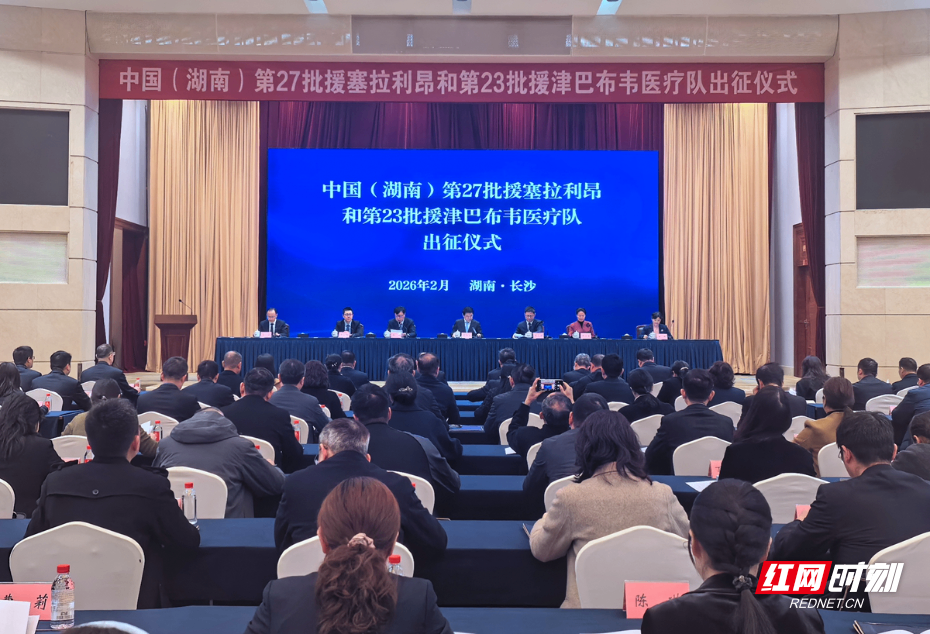 2月27日,中国(湖南)第27批援塞拉利昂和第23批援津巴布韦医疗队出征仪式在长沙举行,两支医疗队将于3月初启程前往非洲。