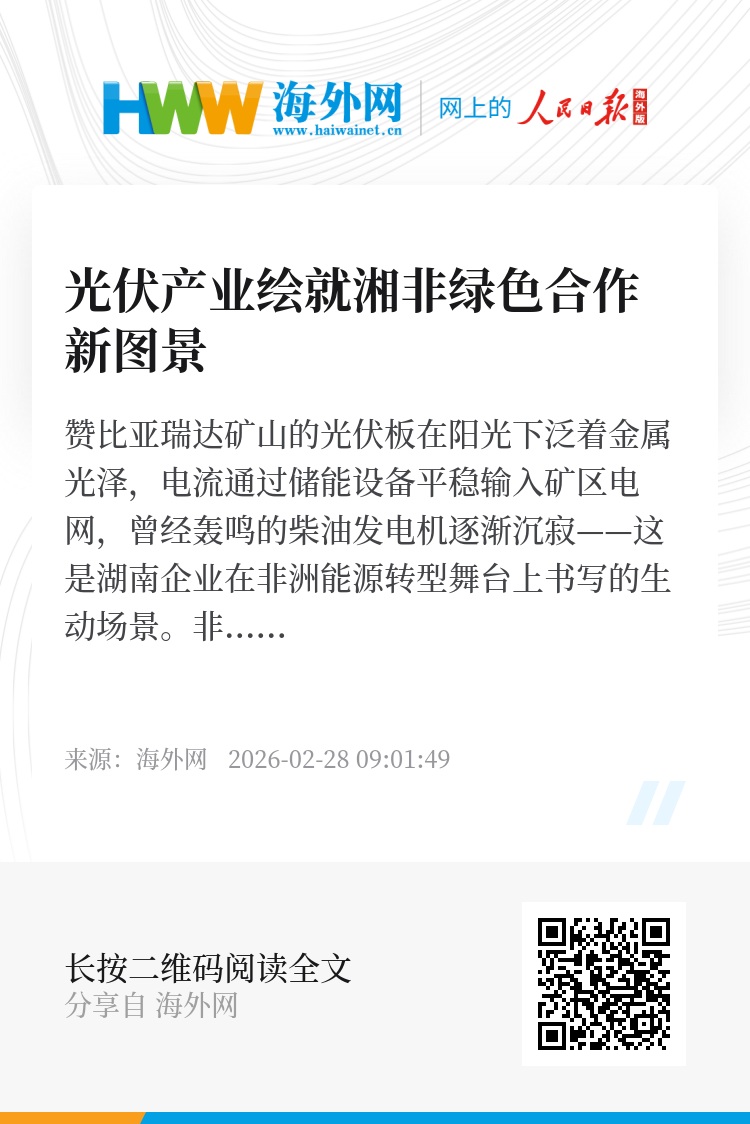 赞比亚瑞达矿山的光伏板在阳光下泛着金属光泽,电流通过储能设备平稳输入矿区电网,曾经轰鸣的柴油发电机逐渐沉寂——这是湖南企业在非洲能源转型舞台上书写的生动场景。