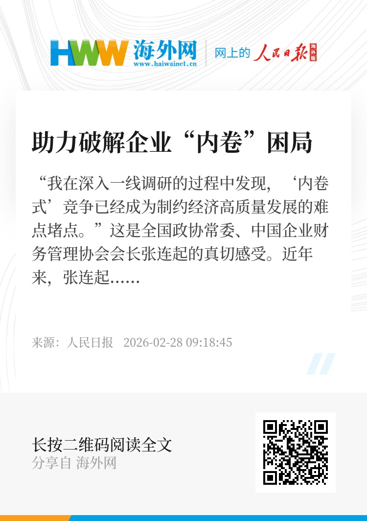 “无底线‘卷价格’、跟风式‘卷赛道’、围剿式‘卷人才’的无序竞争,没有赢家。”张连起认为,破解这一困局的重要切入点,正是推动科技创新与产业创新深度融合。2025年全国两会,张连起提交了关于综合整治“内卷式”竞争、着力推动高质量发展的提案,建议牢牢抓住科技创新这一“牛鼻子”,攻关产业共性技术和关键核心技术,通过引导、支持企业创新和出海,破解“内卷”困局。这份提案也获评全国政协2025年度好提案。