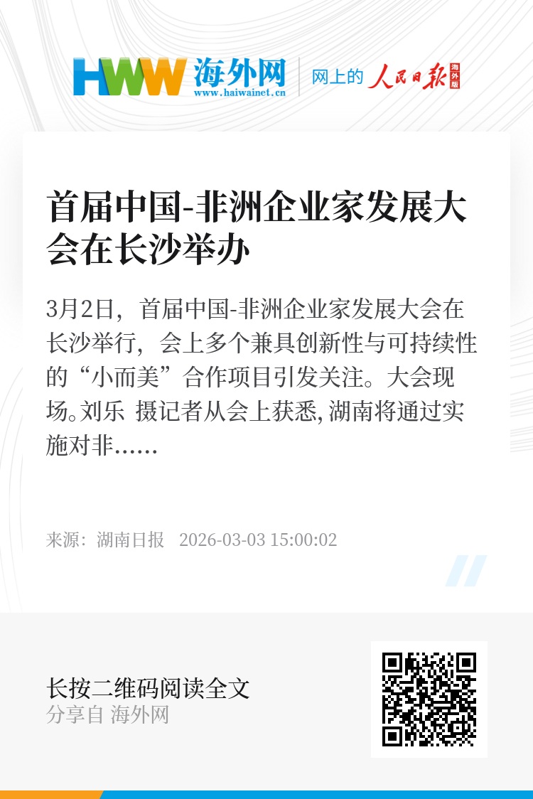 3月2日,首届中国-非洲企业家发展大会在长沙举行,会上多个兼具创新性与可持续性的“小而美”合作项目引发关注。