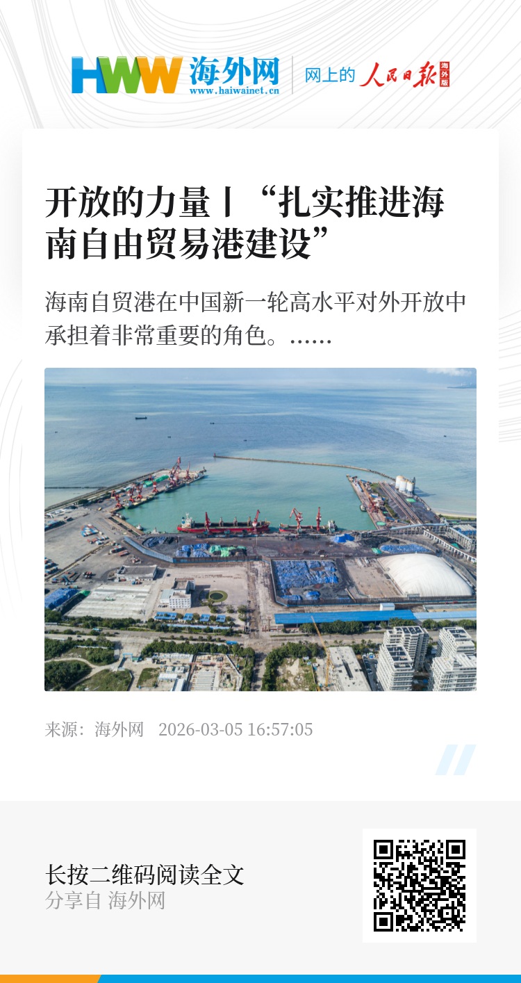 人民日报海外网:请问高标准建设海南自贸港具有怎样的战略意义?
