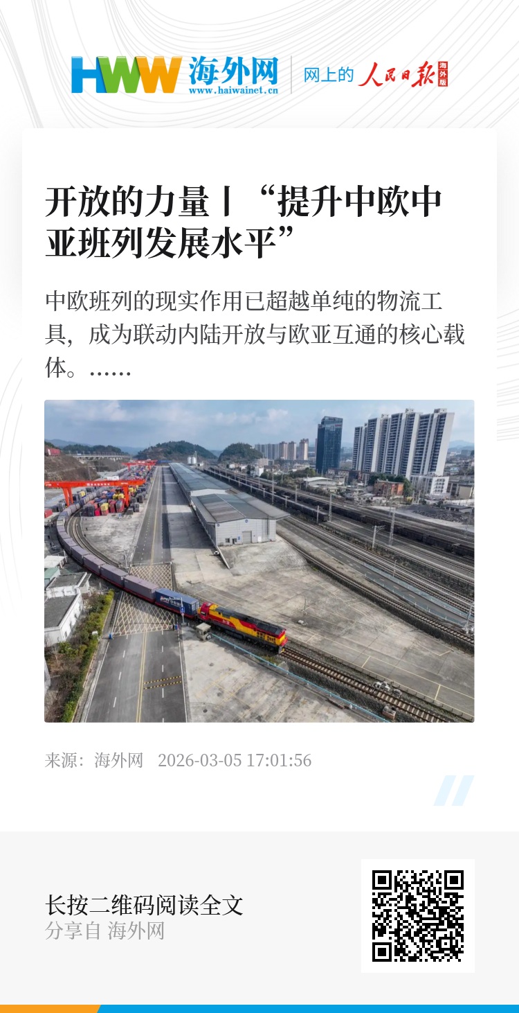 中欧班列为何能够实现跨越式增长?中欧班列货物结构升级释放出怎样的发展信号?站在2026年及更长期视角,其下一阶段的突破点又在哪里?围绕这些问题,人民日报海外网专访了中国人民大学习近平新时代中国特色社会主义思想研究院副院长、国际事务研究所所长王义桅,深入解读中欧班列高质量发展的内在逻辑与战略意义。