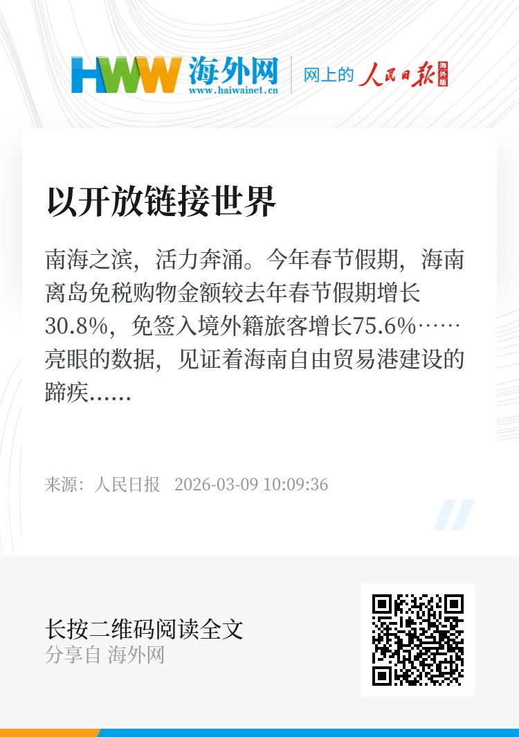 今年春节假期,海南离岛免税购物金额较去年春节假期增长30.8%,免签入境外籍旅客增长75.6%……亮眼的数据,见证着海南自由贸易港建设的蹄疾步稳,更彰显着中国以更高水平的开放链接世界的坚定决心。