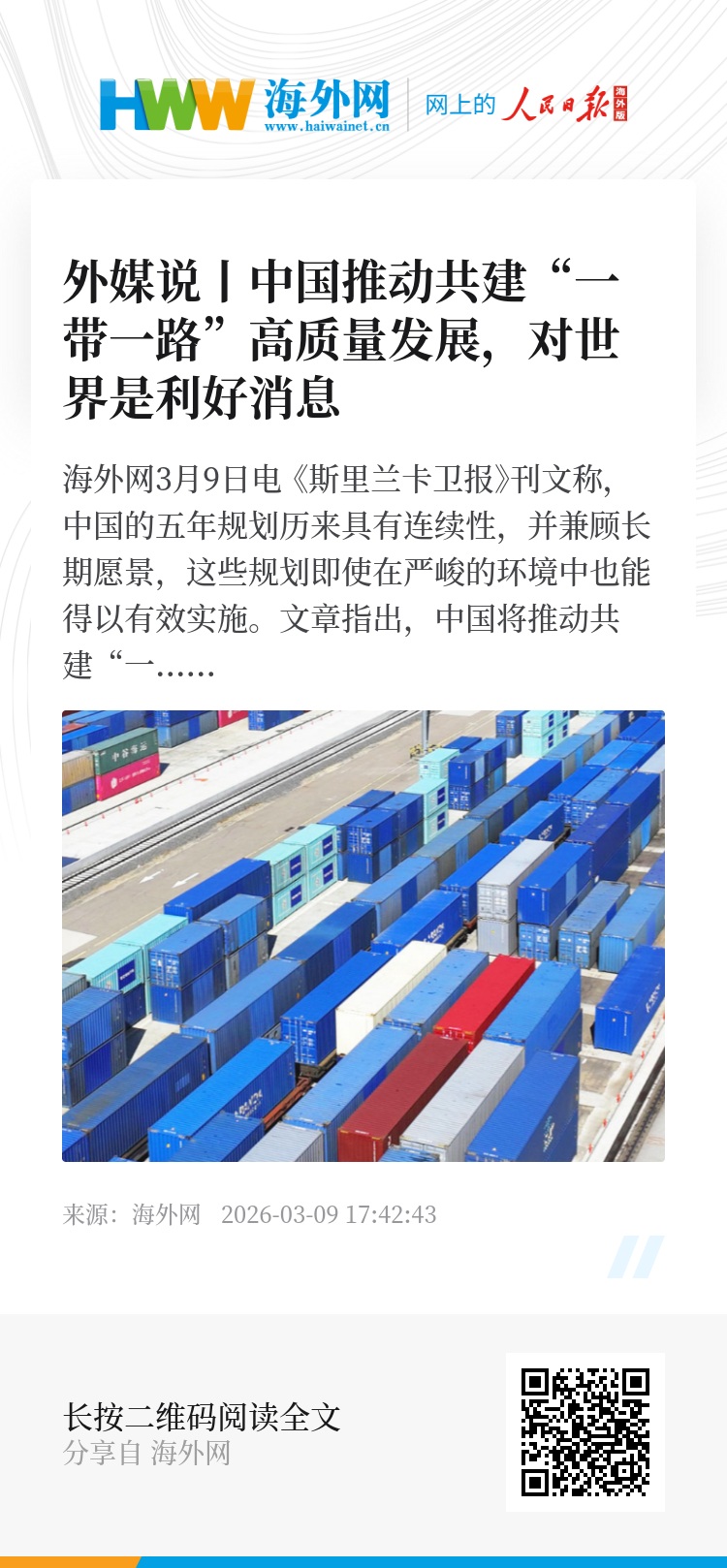 海外网3月9日电 《斯里兰卡卫报》刊文称,中国的五年规划历来具有连续性,并兼顾长期愿景,这些规划即使在严峻的环境中也能得以有效实施。
