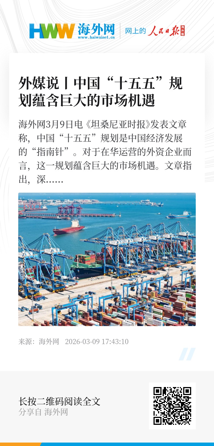 海外网3月9日电 《坦桑尼亚时报》发表文章称,中国“十五五”规划是中国经济发展的“指南针”。对于在华运营的外资企业而言,这一规划蕴含巨大的市场机遇。