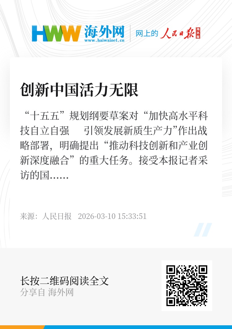 “十五五”规划纲要草案对“加快高水平科技自立自强 引领发展新质生产力”作出战略部署,明确提出“推动科技创新和产业创新深度融合”的重大任务。接受本报记者采访的国际人士认为,中国科技创新成果持续涌现,不断为中国式现代化建设培育新动能,为推动人类共同发展注入澎湃动力。