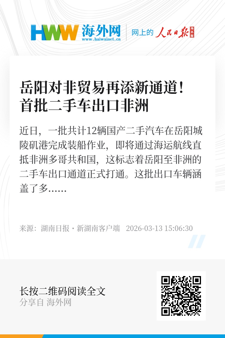 近日,一批共计12辆国产二手汽车在岳阳城陵矶港完成装船作业,即将通过海运航线直抵非洲多哥共和国,这标志着岳阳至非洲的二手车出口通道正式打通。