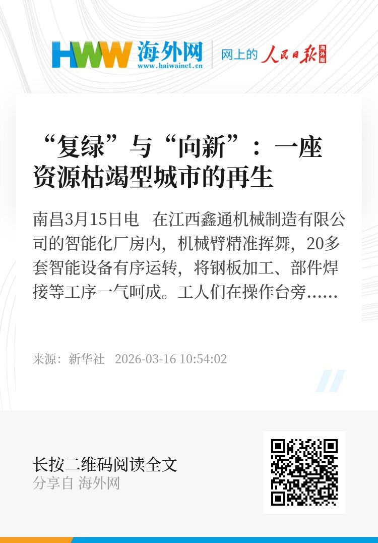 截至目前,萍乡新产业占比已经突破50%,并成功培育出新能源新材料、智能制造、节能环保和循环经济、食品医药四大百亿元产业。萍乡,这座曾因煤而兴的传统工业城市,正在生态复绿与科技赋能的双重驱动下,焕发全新发展活力。(记者 张东阳)