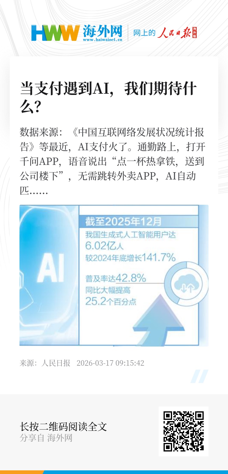 回望支付升级之路,每一次迭代都以降低门槛、提升效率为核心。从银行卡支付的标准化结算,到移动支付“扫一扫”的普及,再到如今AI支付的对话即付、无感完成,支付介质不断简化,支付形态不断进化,服务边界持续拓展,支付成为融入生活的智能服务。由“完成交易”走向“服务生活”,搭上AI这趟列车,支付还有更多可能。