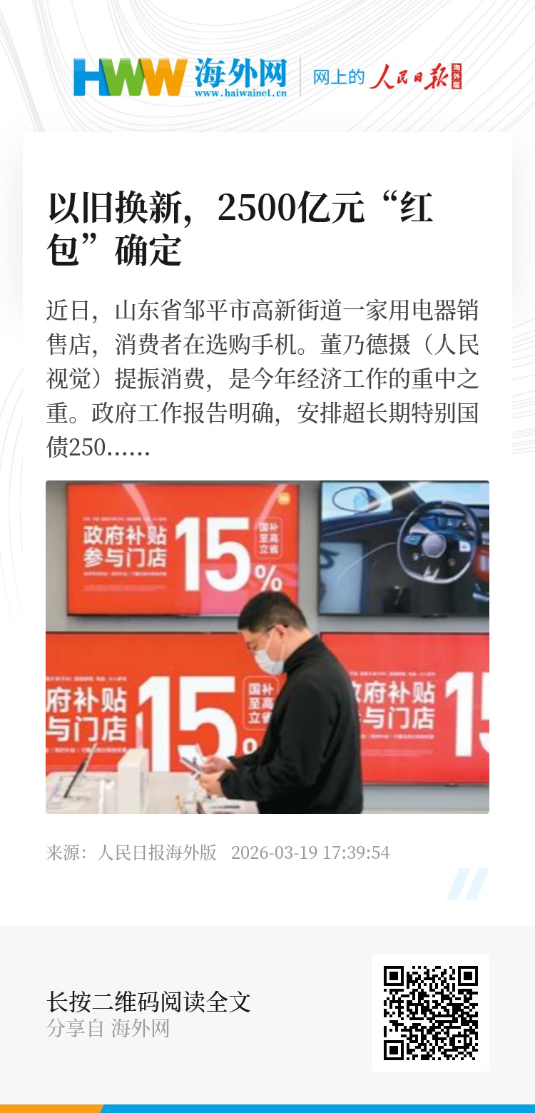 提振消费,是今年经济工作的重中之重。政府工作报告明确,安排超长期特别国债2500亿元支持消费品以旧换新。