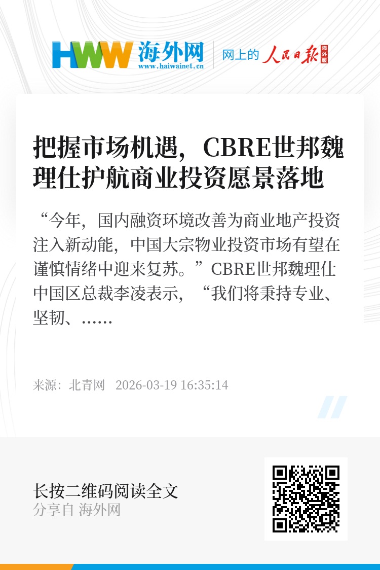 “今年,国内融资环境改善为商业地产投资注入新动能,中国大宗物业投资市场有望在谨慎情绪中迎来复苏。”CBRE世邦魏理仕中国区总裁李凌表示,“我们将秉持专业、坚韧、创新,把握市场机遇、有效构建交易,助力客户对接优质资源,实现投资目标。”