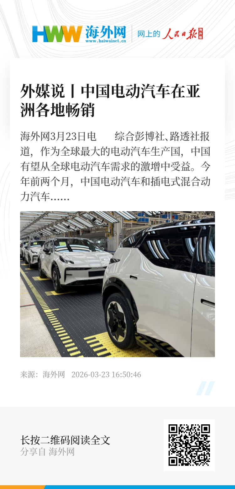 海外网3月23日电 综合彭博社、路透社报道,作为全球最大的电动汽车生产国,中国有望从全球电动汽车需求的激增中受益。今年前两个月,中国电动汽车和插电式混合动力汽车的出口量,较去年同期均有大幅增长。由于油价上涨,购买电动汽车的用户数量上升,中国电动汽车品牌在亚洲各地销售火爆。
