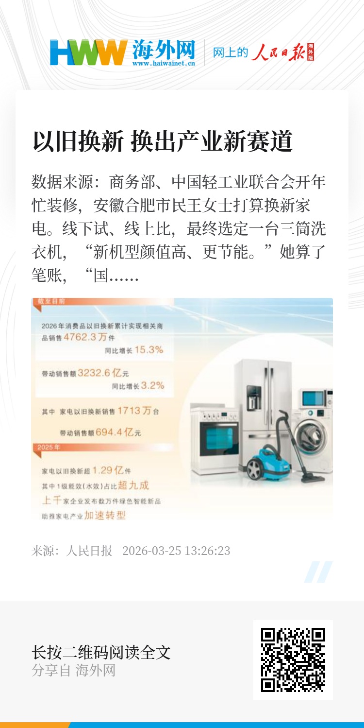 在徐东生看来,随着政策效应持续显现,绿色产品零售向供给端深入传导,材料研发、生产制造、应用验证的产业链得到焕新,形成更强的产业竞争优势。“从这个角度来看,以旧换新,换出的既是市场新产品,也在换出产业新生态。”徐东生说。