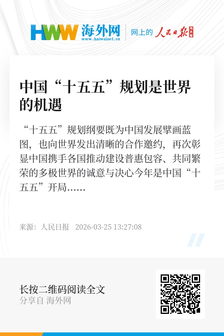 “十五五”规划纲要既为中国发展擘画蓝图,也向世界发出清晰的合作邀约,再次彰显中国携手各国推动建设普惠包容、共同繁荣的多极世界的诚意与决心