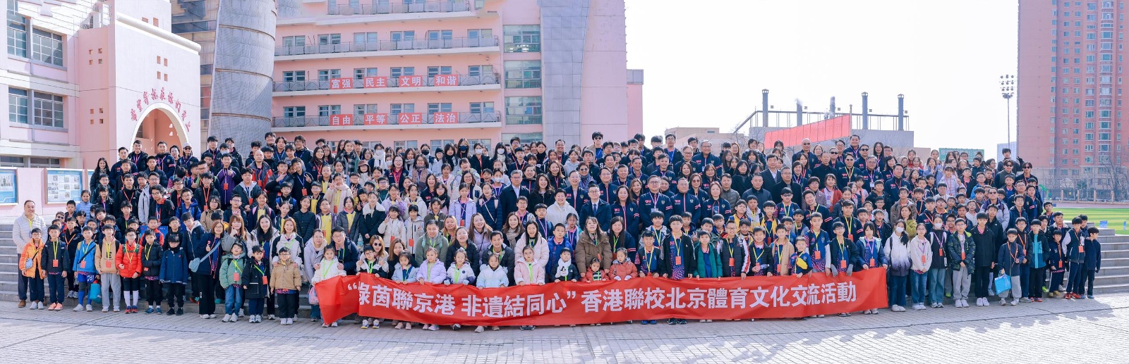 3月21日,“绿茵联京港 非遗结同心——香港观塘区联校心系家国北京体育及非遗文化交流团”活动在北京市丰台区怡海中学举办。来自香港观塘区28所中小学、幼儿园及特殊学校的300余名师生、家长跨越山海赴京,以足球竞技为纽带、非遗文化为桥梁,促成两地20对学校缔结姊妹友好关系,在沉浸式互动交流中拉近情感距离、厚植家国认同,开启京港基础教育融合的新篇章。