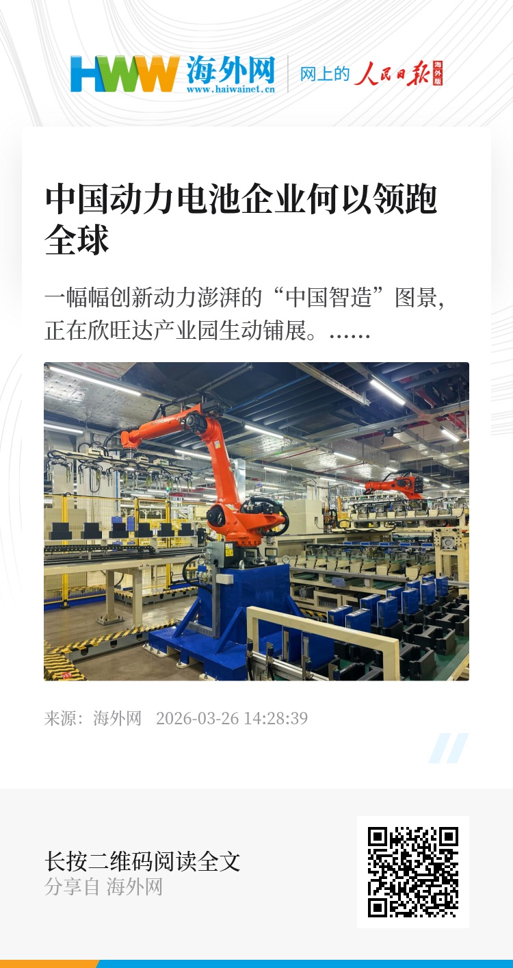 巩固优势,中国动力电池企业怎样实现绿色可持续发展?这成为下一步推动产业高质量跃迁的重点。“十五五”规划纲要提出,加快高水平科技自立自强,引领发展新质生产力。向“新”而行,以“质”致远,期待以欣旺达为代表的中国动力电池企业,持续为世界绿色发展贡献中国智慧和力量。(人民日报海外网 李雪钦)