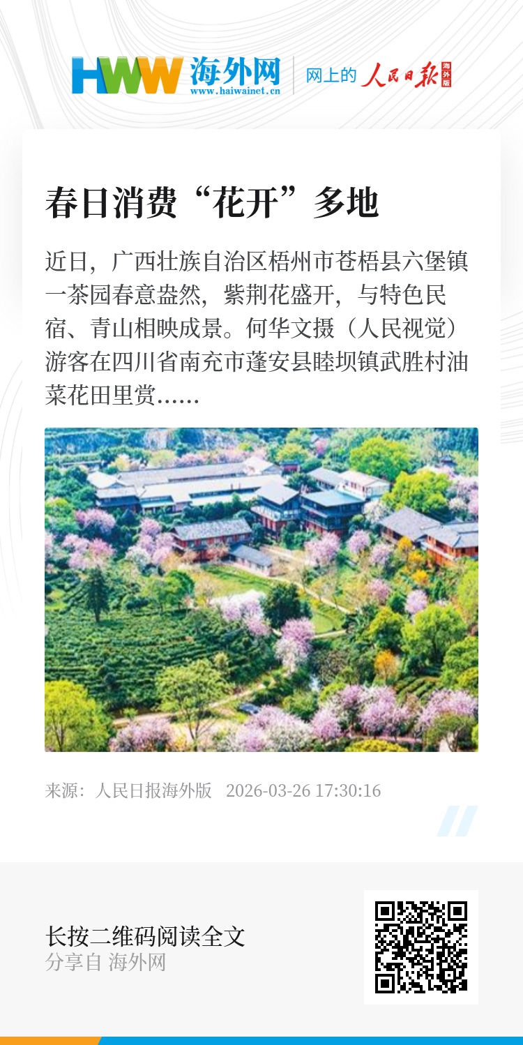春光作序,万物向新。农历马年,春日消费“花开”多地,沉浸式体验、传统文化融入春景……这股涌动的“春潮”,既是消费需求升级的多彩答卷,更是中国经济蓬勃活力的生动注脚。