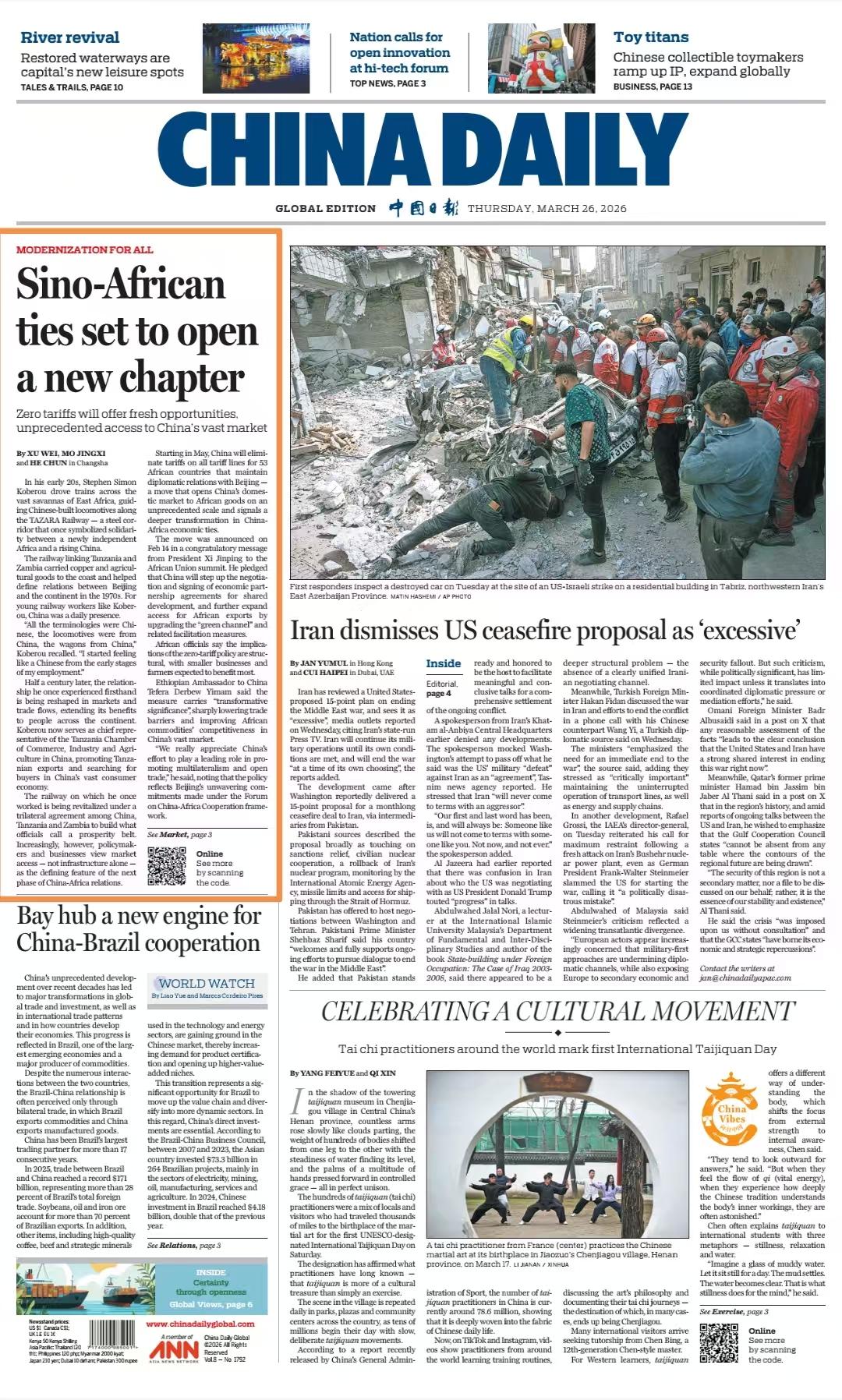 《中国日报》旗舰版3月26日头版。