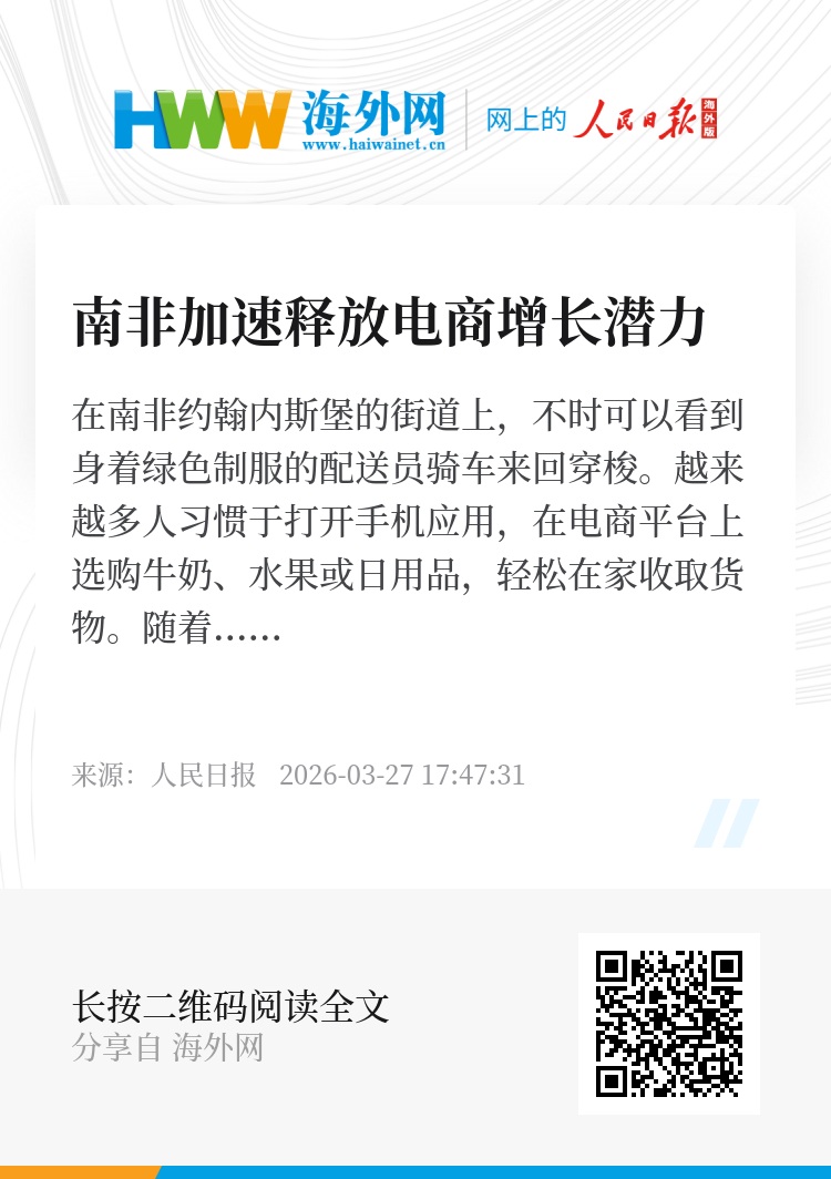 近年来,国际电商平台也加速布局南非市场。中国电商企业逐步成为推动当地电子商务创新的主要力量。拼多多旗下Temu、快时尚平台希音等凭借价格优势和供应链配送效率迅速打开市场。2025年,为适应当地监管要求、增强平台竞争优势,Temu在南非开设本土仓储基地,以缩短配送时间、提升物流效率。南非电子商务论坛首席执行官阿拉斯泰尔·坦佩斯特表示,南非电商产业的发展后劲大,有望成为本国数字经济增长的重要驱动力。(记者 戴楷然)
