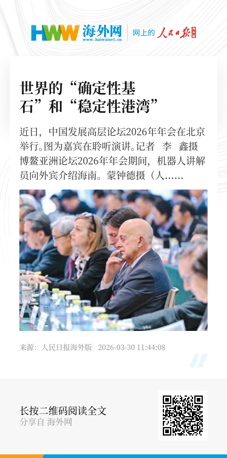 近日,随着中国发展高层论坛2026年年会、博鳌亚洲论坛2026年年会相继举行,国际舆论再度聚焦中国。“中国发展的确定性”“扩大高水平对外开放”“全面优化营商环境”“构建开放包容的区域合作框架”等成为热议的话题。多家外媒指出,今年是“十五五”开局之年,中国释放的积极信号,不仅向全球商界传递了稳定预期,也为充满不确定性的世界经济注入了宝贵信心。