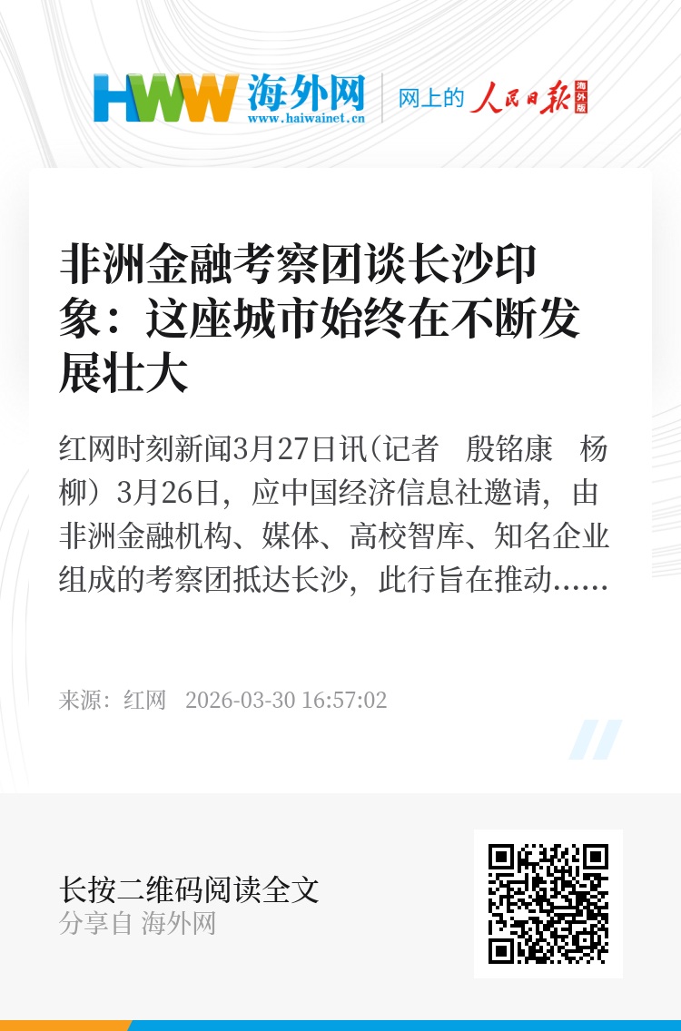 红网时刻新闻3月27日讯(记者 殷铭康 杨柳)3月26日,应新华社中国经济信息社邀请,由非洲金融机构、媒体、高校智库、知名企业组成的考察团抵达长沙,此行旨在推动湖南与非洲各国在金融服务、产业合作、经贸往来等领域的深度对接与交流。